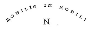 Les plats, recouverts de leur cloche d’argent, furent symétriquement posés sur la nappe, et nous prîmes place à table. Décidément, nous avions affaire à des gens civilisés, et sans la lumière électrique qui nous inondait, je me serais cru dans la salle à manger de l’hôtel Adelphi, à Liverpool, ou du Grand-Hôtel, à Paris. Je dois dire toutefois que le pain et le vin manquaient totalement. L’eau était fraîche et limpide, mais c’était de l’eau, — ce qui ne fut pas du goût de Ned Land. Parmi les mets qui nous furent servis, je reconnus divers poissons délicatement apprêtés ; mais, sur certains plats, excellents d’ailleurs, je ne pus me prononcer, et je n’aurais même su dire à quel règne, végétal ou animal, leur contenu appartenait. Quant au service de table, il était élégant et d’un goût parfait. Chaque ustensile, cuiller, fourchette, couteau, assiette, portait une lettre entourée d’une devise en exergue, et dont voici le fac-similé exact :